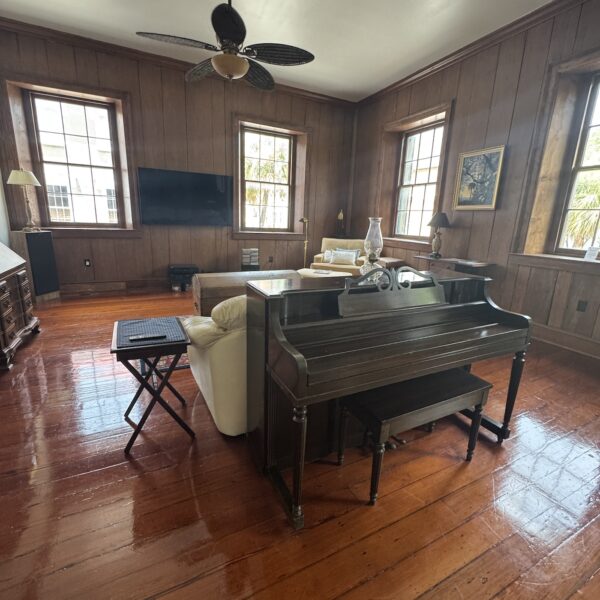 Perched on the second story in the heart of Charleston’s historic French Quarter, this stunning 1,500 sq. ft. one-bedroom, one-bath residence offers the perfect blend of timeless charm and refined comfort. Every detail reflects the elegance of old Charleston, from its soaring ceilings and gleaming wood floors to antique furnishings, curated artwork, and sparkling crystal accents.