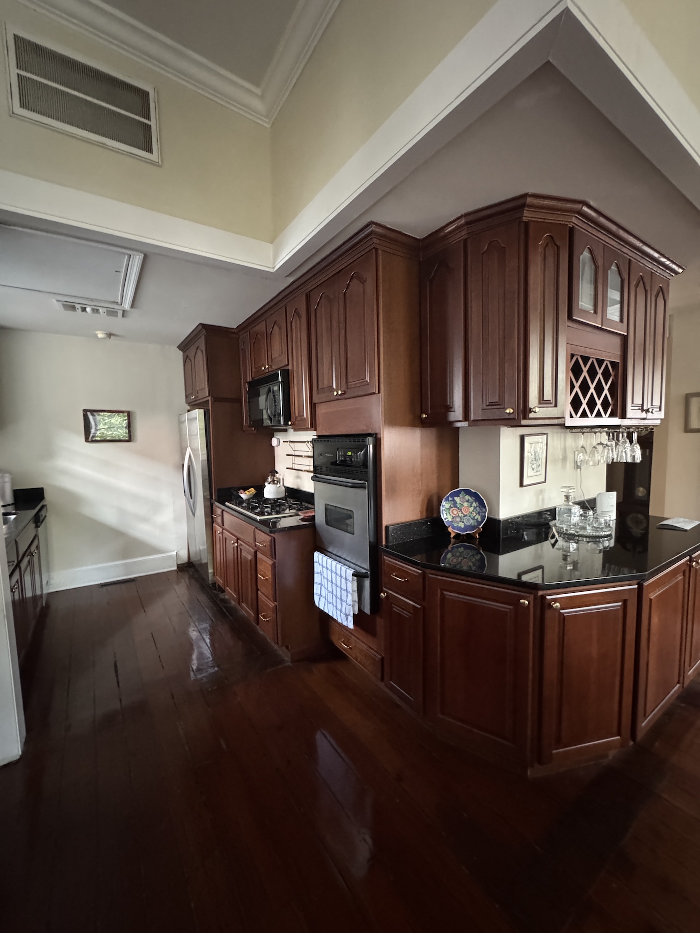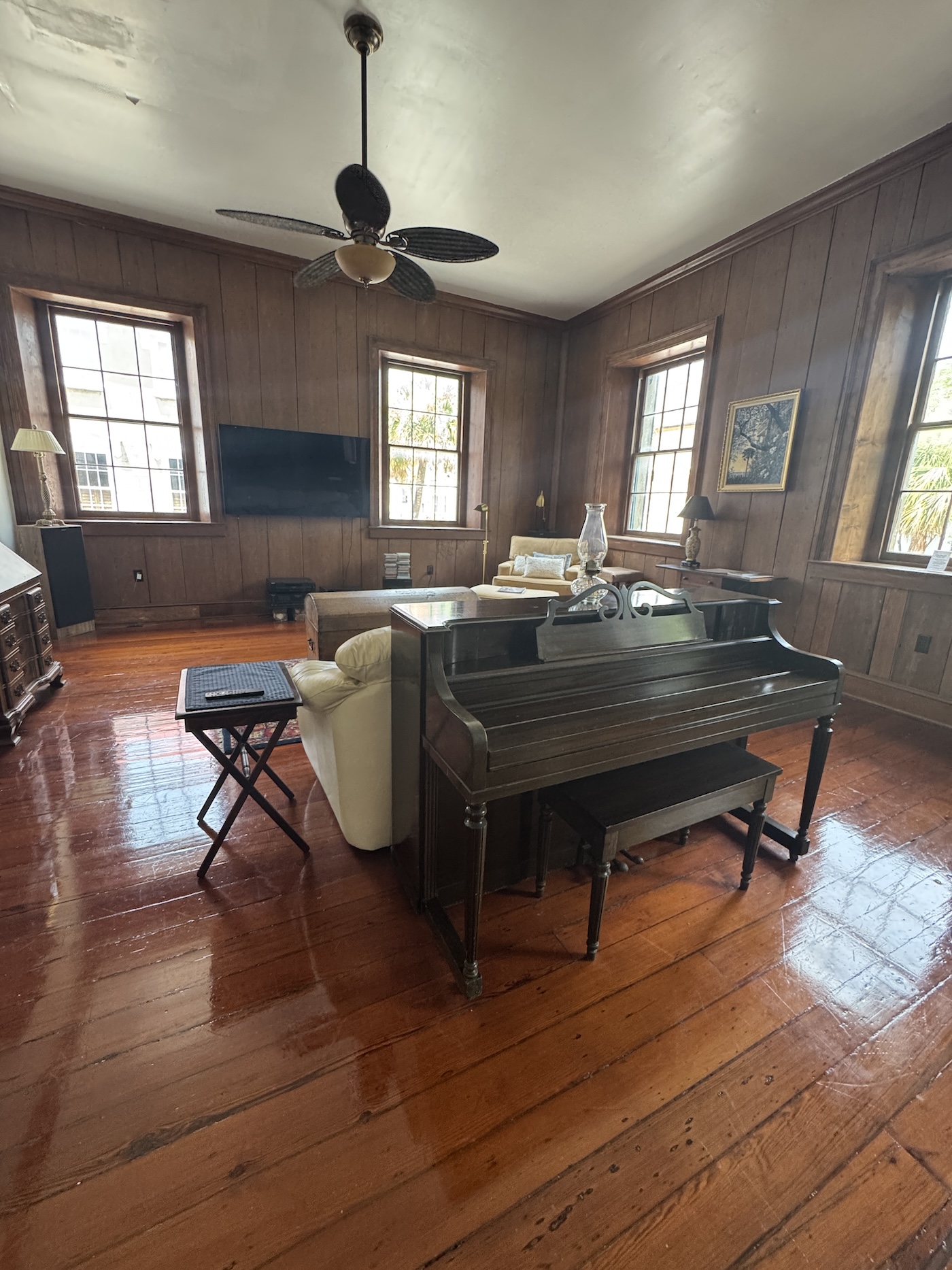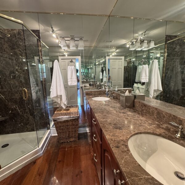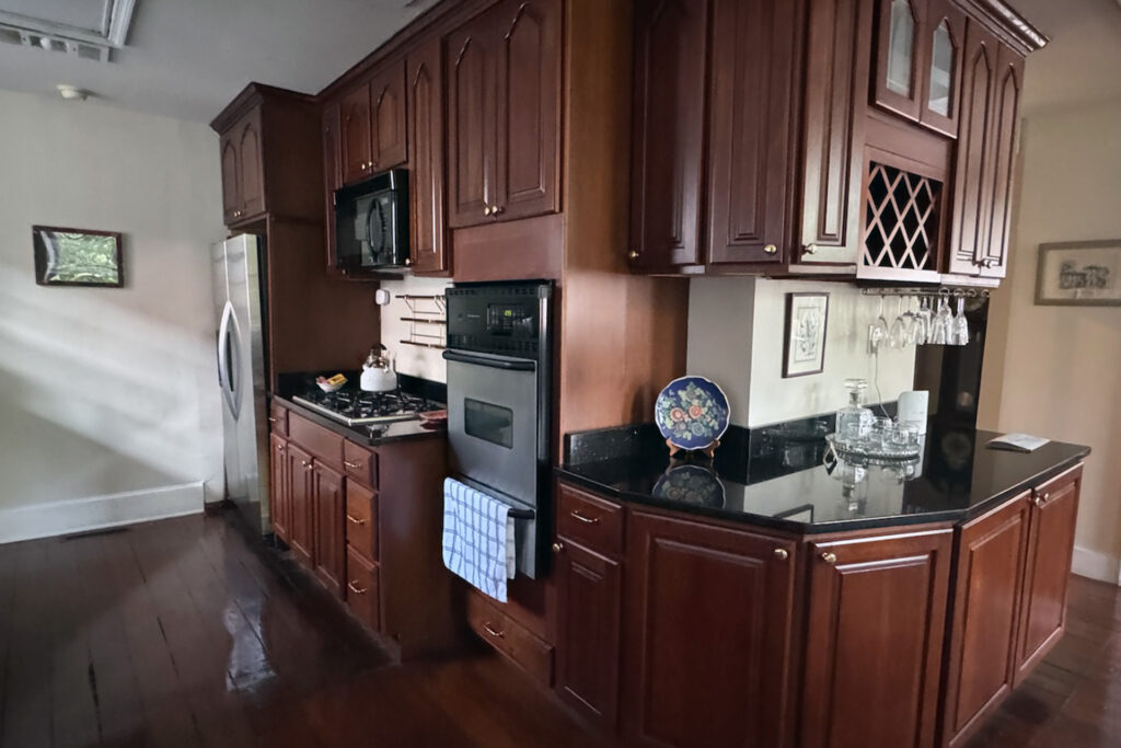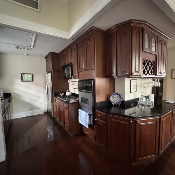 The chef’s kitchen is outfitted with granite countertops, premium appliances, and fine stemware, making it as inviting for a quiet breakfast as it is for a special dinner. A large dining room and spacious living area — complete with a beautiful piano — provide the perfect setting for entertaining guests or enjoying a private evening in. French doors open to a covered balcony, where you can savor soft breezes and a view of the charming streets below.